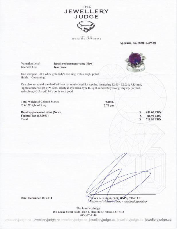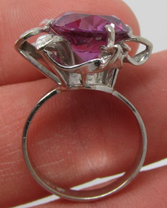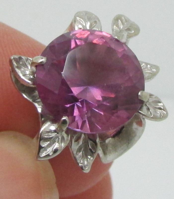 10 Kt White Gold & Synthetic Pink Sapphrie Flower Ring - Size 6 1/2 - Appraised Value $630
