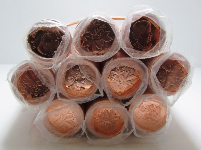 10 Unopened Rolls Of 2012 Canadian Non-Magnetic Pennies - Still In Original Mint Shrinkwrap