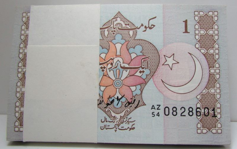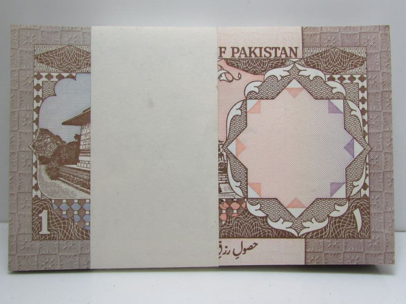 100 Consecutive Government Of Pakistan 1 Rupee Bank Notes - Original Paper Wrap Still In-tact - Nice Crisp Excellent Condition