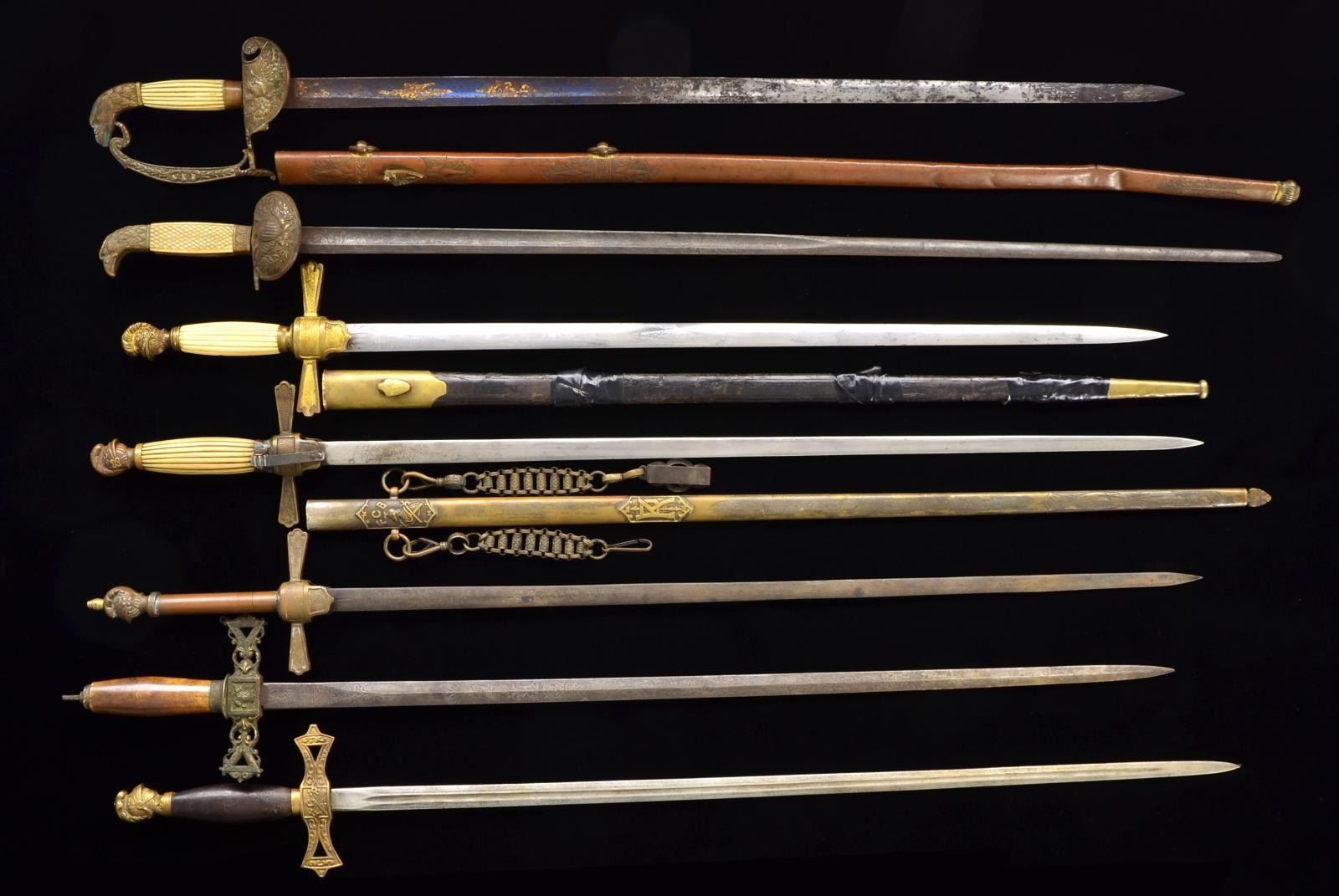 12 AMERICAN MILITIA, NAVAL & MASONIC SWORDS.