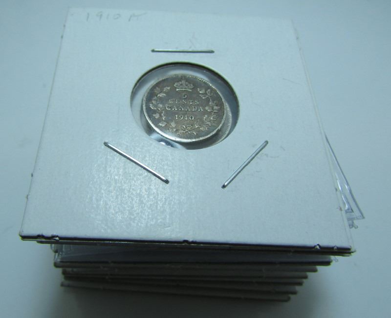 13 Canadian Silver 5-Cent Coins. Lot Includes: 1880 (G+), 1888 (VG), 1893 (VG), 1903-Small H (VG), 1905 (F+), 1906 (VG), 1910 (EF), 1913 (VG), 1916 (VG), 1917 (VG), 1918 (VG), 1919 (F), 1920 (VF) -- Lot Books At $68