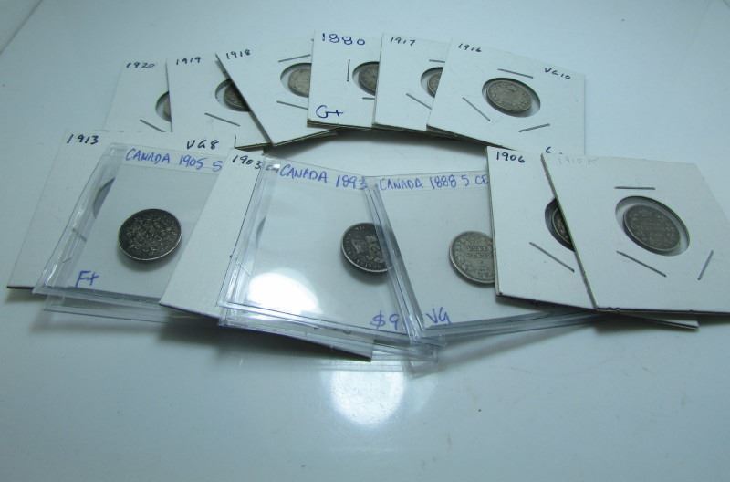 13 x Canadian Silver 5-Cent Coins (1880-1920)