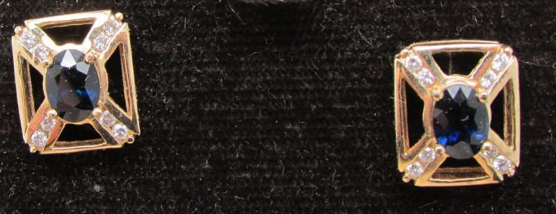 14 Kt Yellow Gold Sapphire & Diamond Stud Earrings - Appraised Value $ 1785