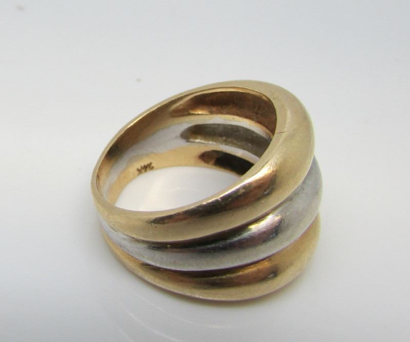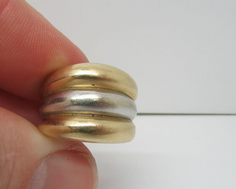 14 Kt Yellow & White Gold Wide Heavy Domed Band - Size 7 - 9.72 Grams