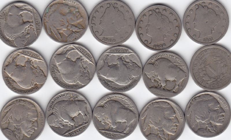 15 United States 5-Cent Nickel Coins - 1906 - 1925