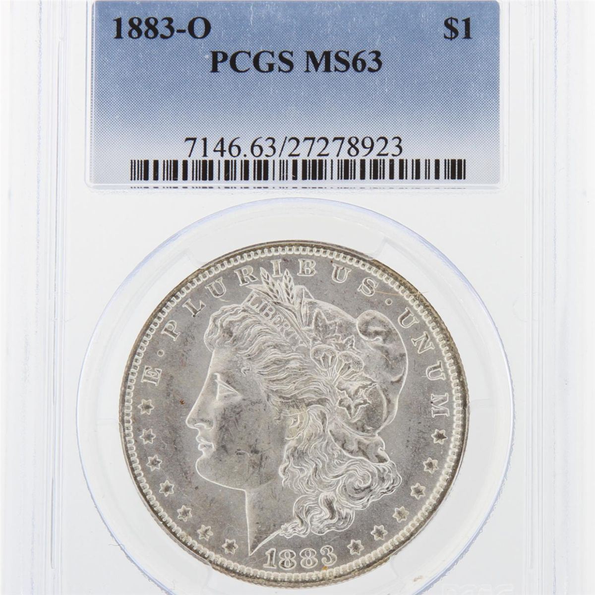1883-O Morgan Silver Dollar PCGS Graded MS63 SCE1003. As-Is Condition. LG107RK. One 1883-O Morgan Silver Dollar PCGS Graded MS63.