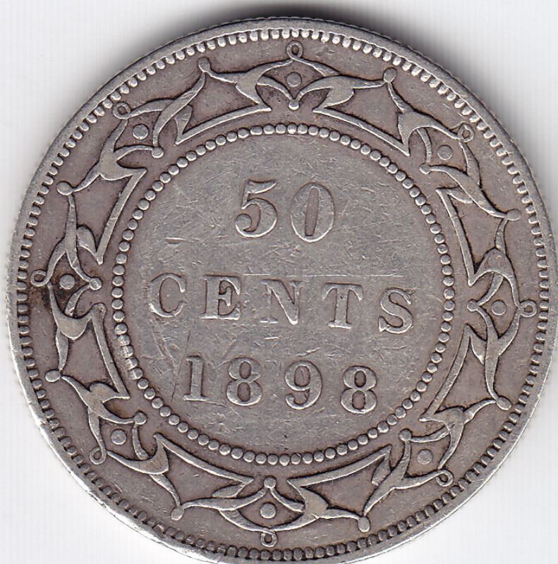 1898 Newfoundland Canada Silver 50-Cent Coin - VF