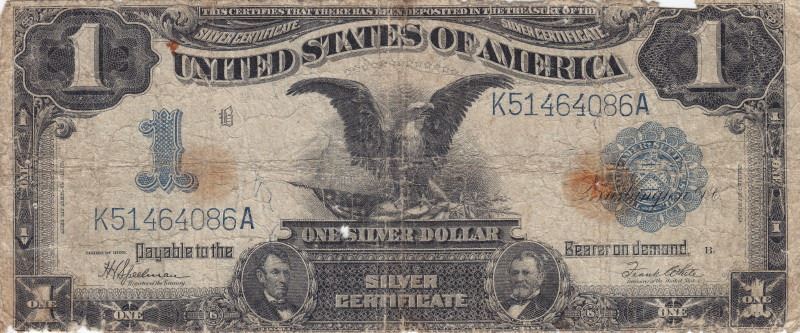 1899 USA $1 Silver Dollar Paper Certificate - #33818 - Serial K51464086A -- Books At $50
