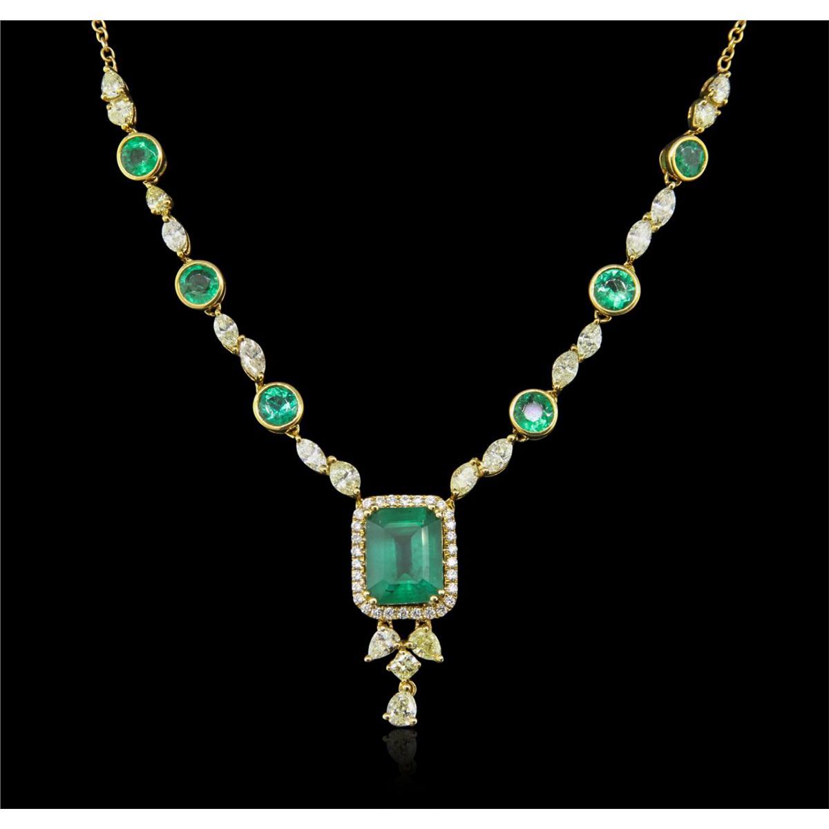 18KT Yellow Gold 4.77ctw Emerald and Diamond Necklace FJM3438