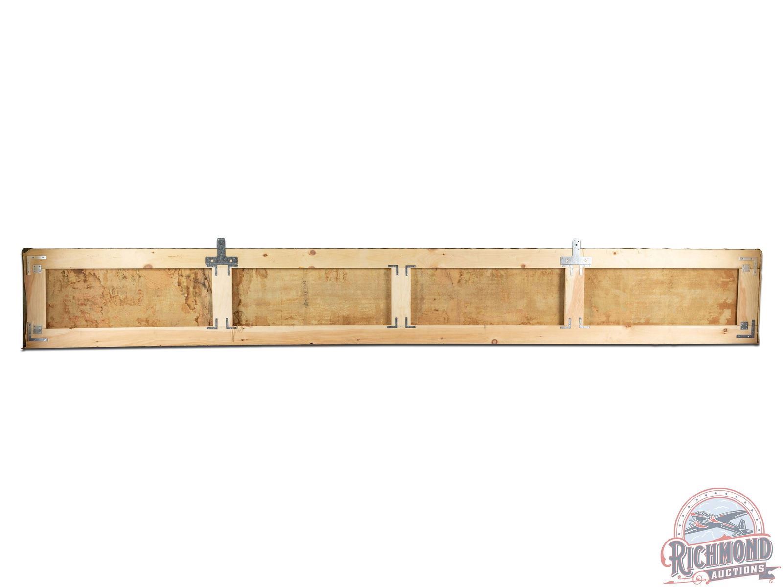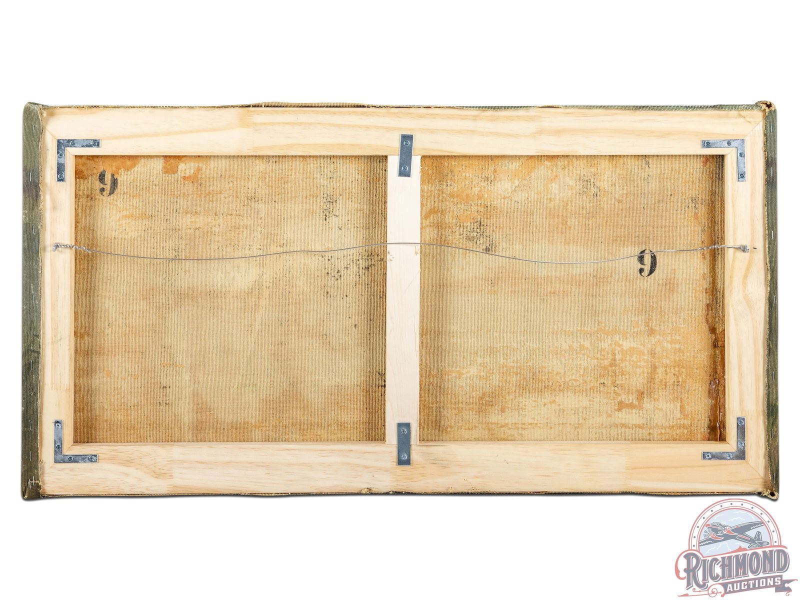 Each piece in this collection was masterfully painted on muslin, showcasing hunting and animal scenes that epitomize the genteel sporting life of the East Coast during that era. Separated in the mansion by mahogany columns and detailed molding, the paintings vary in size and were likely painted off-site with specific wall measurements provided to the artist. A unique number was placed on the reverse of each painting that is believed to correspond to a specific wall location in the room. Due to this unique installation method, no artist signatures have been discovered. It is speculated that signatures may have been placed at the bottom of each painting or on one lone piece, subsequently concealed by ornamental mahogany panels and trim, but potentially removed during the extraction process. The paintings were removed from the mansion before its demolition, preserving a unique slice of American artistic and cultural history. This feature adds to their individual allure, charm, and historical significance.