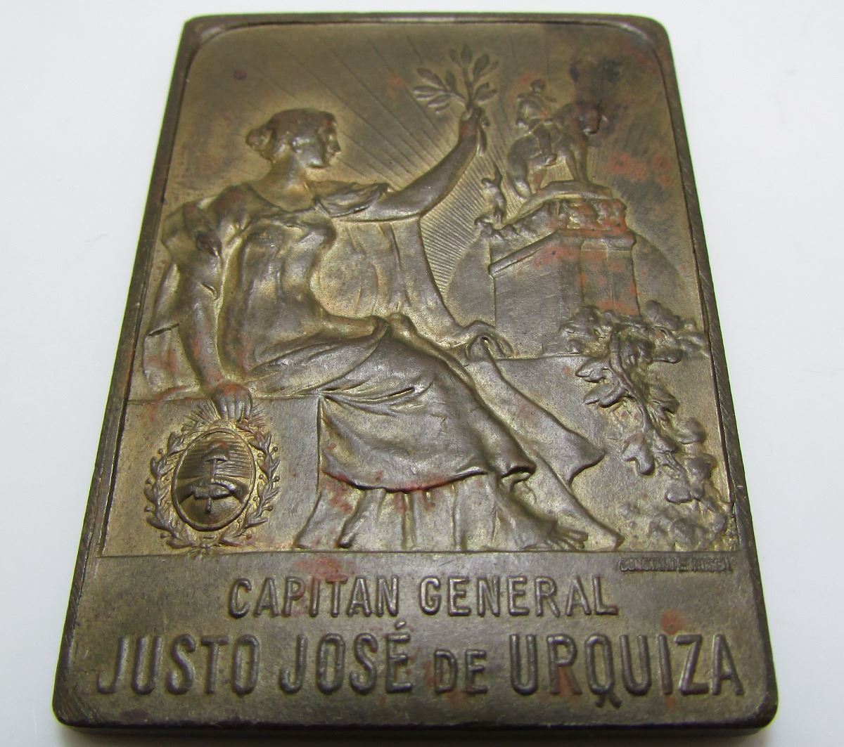 1920 Province Of Buenos Aires Argentina Plaque - Captain General Justo J. De Urquiza - 36 x 51 mm -- Be sure to also check our next auction January 10th for a much larger collection of Medals