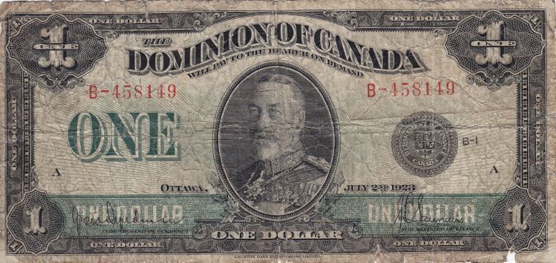 1923 Dominion Of Canada $1 Dollar Paper Note - Black Seal - Hyndman/Saunders Signatures - Series B - Book Value $50