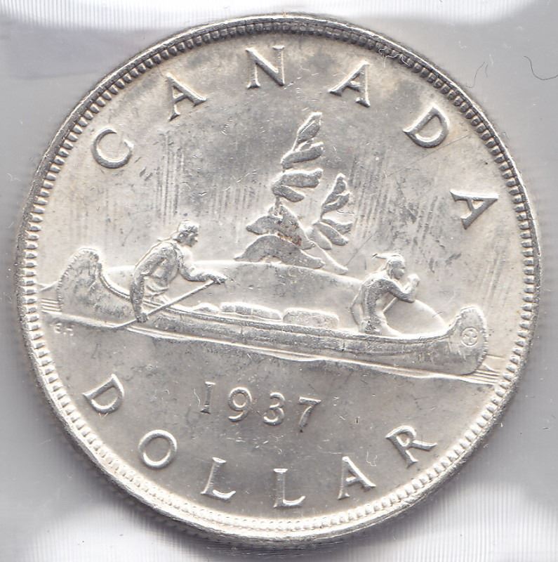1937 Canadian Silver $1 Dollar Coin - Graded By ICCS - MS-64! -- Book Value $275
