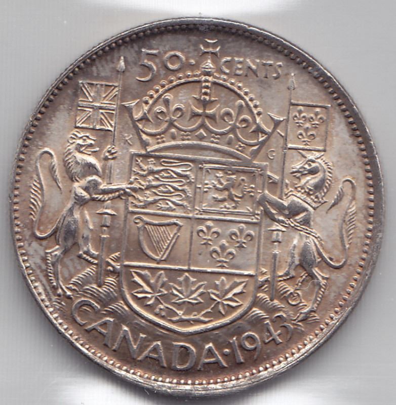1943 Canadian Silver 50-Cent Half Dollar Coin - Graded By ICCS - AU-58 -- Book Value $42 (XAU 068)