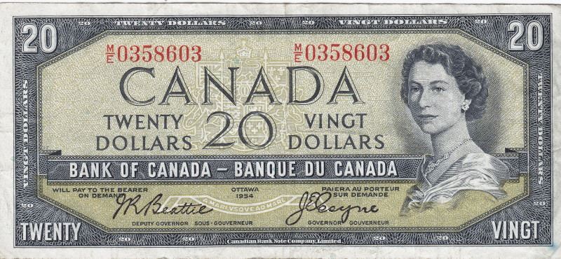 1954 Bank Of Canada $20 Modified Portrait Bank Note - Beattie/Coyne Signatures - Book Value $40
