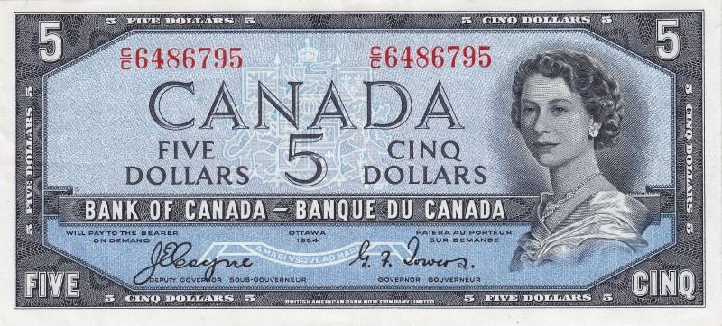1954 Bank Of Canada $5 Devil's Face Bank Note - C/C Serial - Coyne/Towers Signatures - AU Condition - Book Value $400