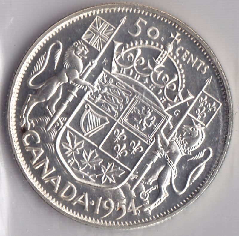 1954 Canadian Silver 50-Cent Half Dollar Coin - Graded By ICCS PL-65 -- Book Value $100 (FL 313)
