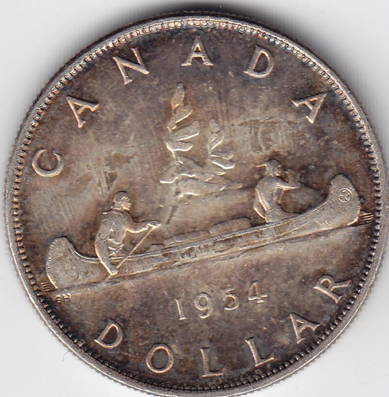 1954 Canadian Silver $1 Dollar Coin - BU Quality - Toned - Book Value $80