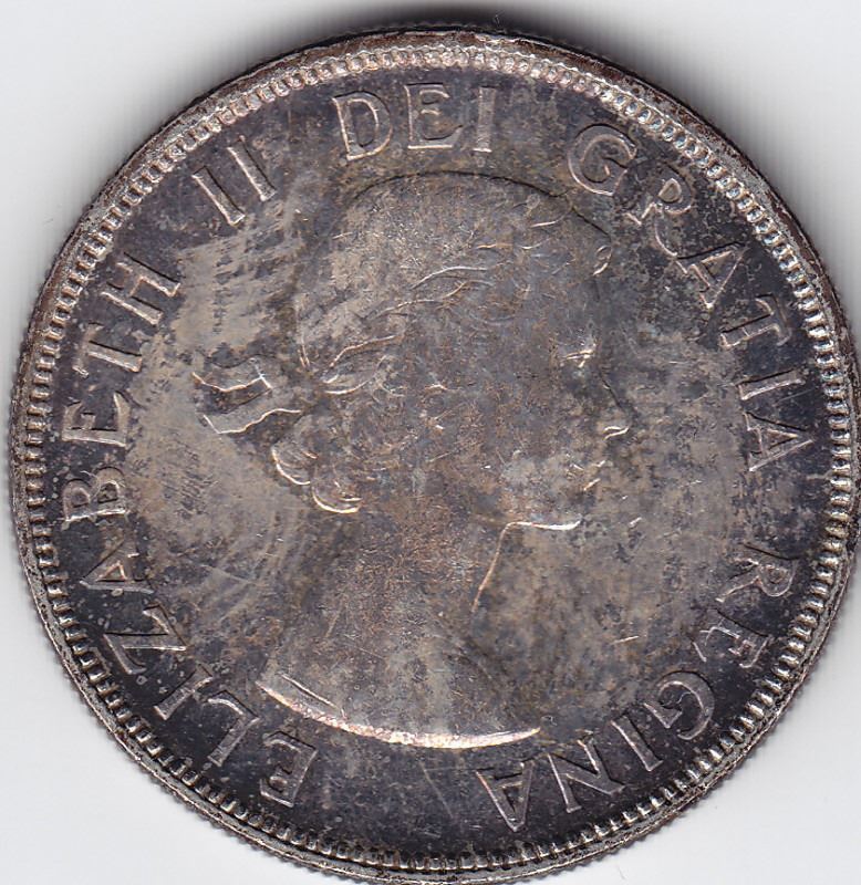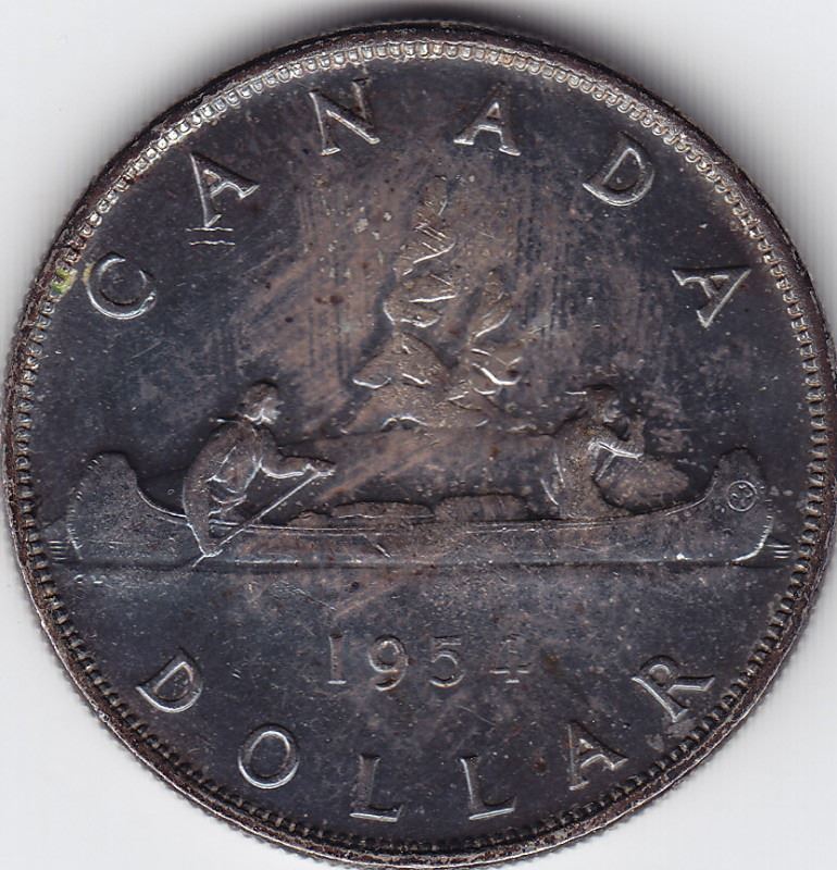 1954 Canada Silver Dollar Coin - SWL Variant - Toned