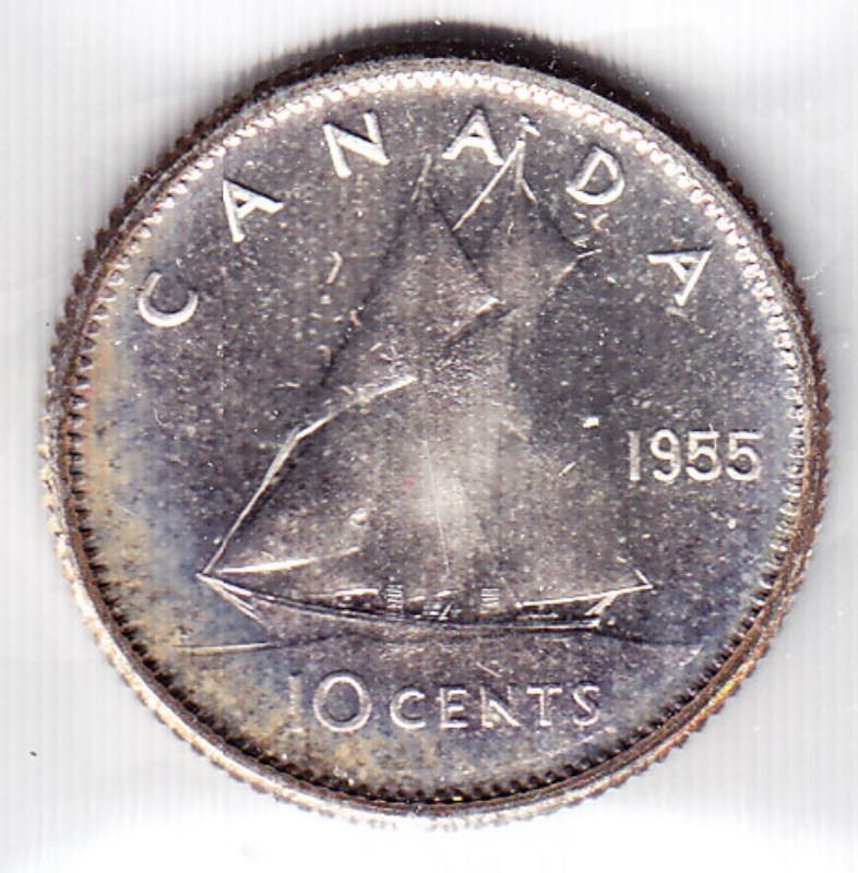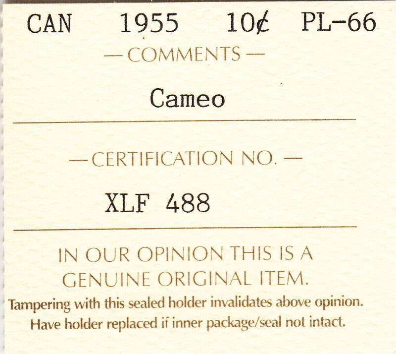 1955 Canadian Silver 10-Cent Coin - Graded By ICCS - PL-66 -- Book Value $100 (XLF 488)