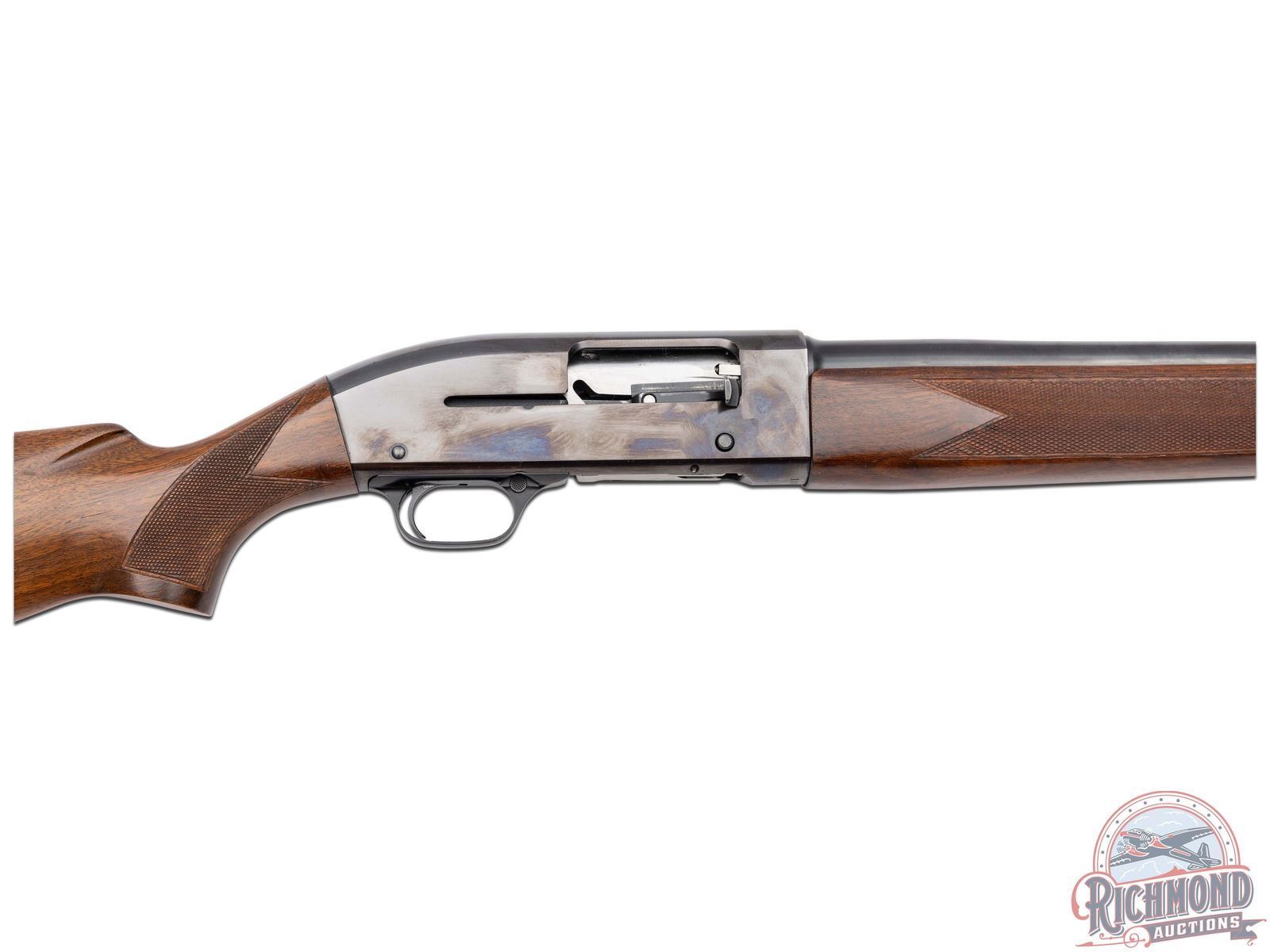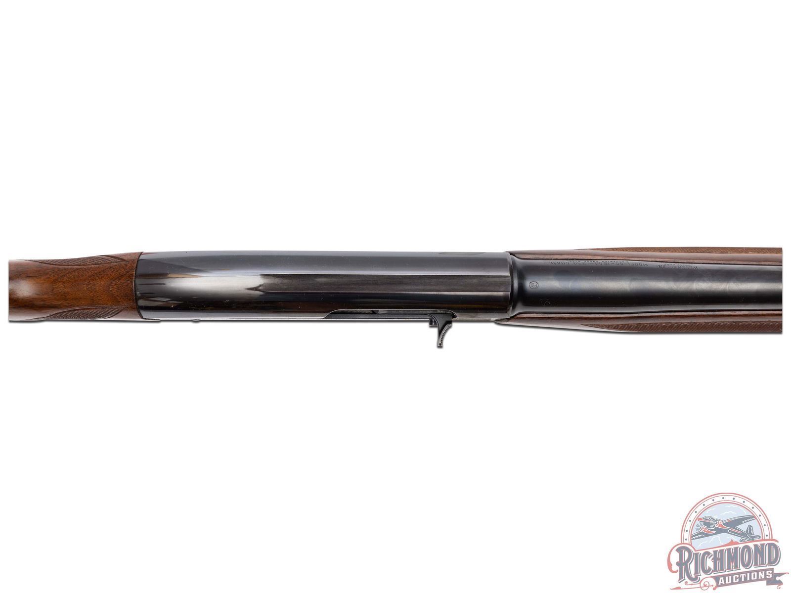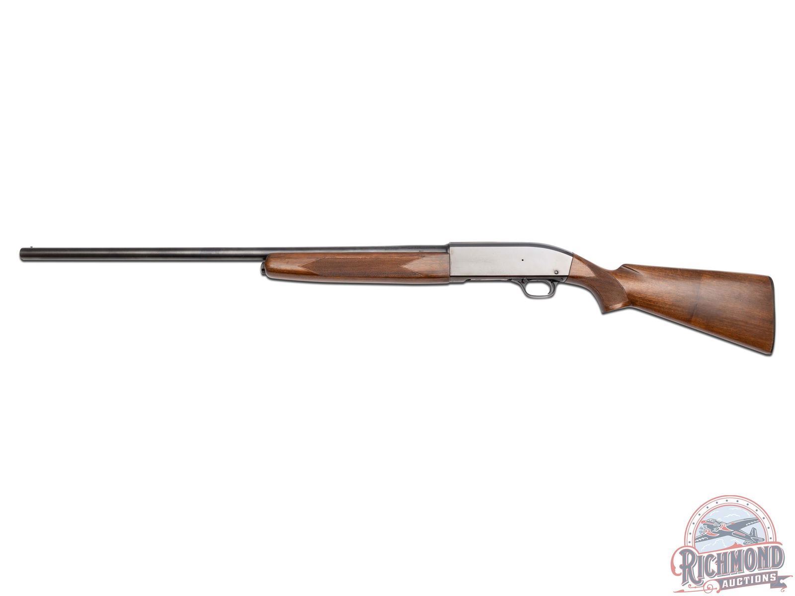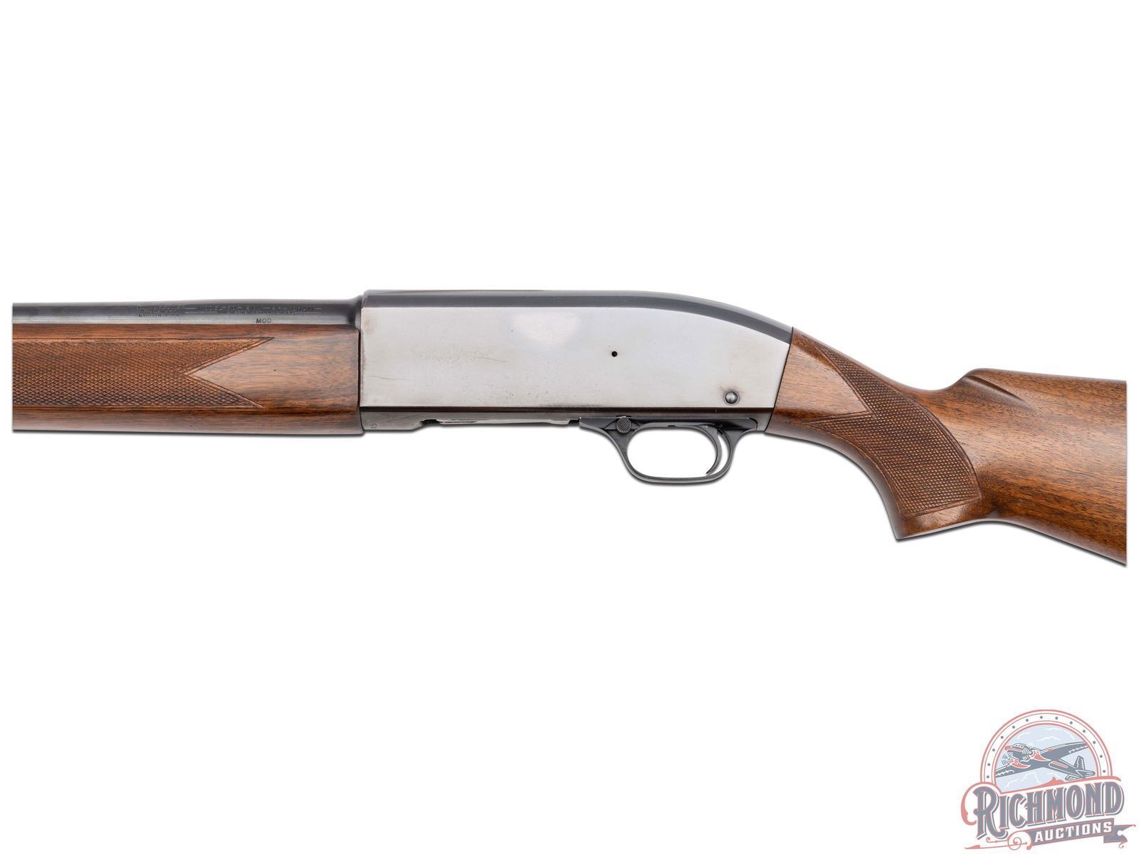 Manufactured in 1961. Features a 28" blued round barrel chambered for 2-3/4" shells with Modified choke. Nickel bead front sight and all the correct Winchester stampings. Blued receiver and crossbolt safety. Straight grain walnut wood stock and trap style forearm. Hand-checkering on pistol grip and both sides of the forearm. Fitted with a factory Winchester checkered butt plate. Advertising cardboard stand made by Olin for Winchester measures 39" tall and 29" wide. Colorful display lists features of the "All-New Model 50" and has a slot in the base for the shotgun to stand in. LOP: 13-3/4". DAC: 1-1/2". DAH: 2". CALIBER: 12 GA. S/N: 188245. FFL STATUS: Curio & Relic.