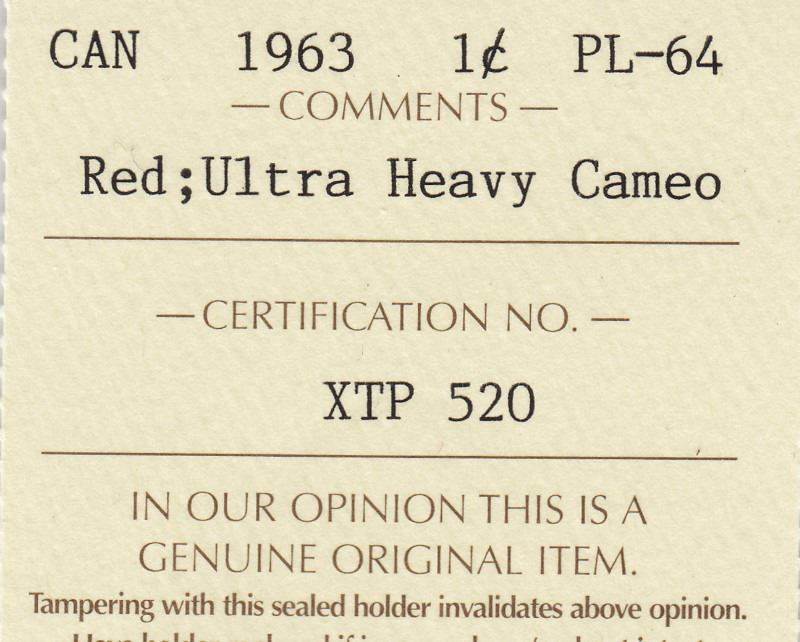 1963 Canadian Small Cent Penny Coin - Grade By ICCS PL-64; Red - Ultra Heavy Cameo -- Book Value $25 (XTP 520)