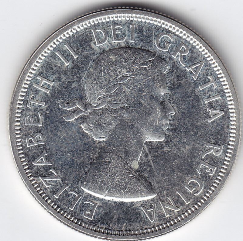 1964 Canadian Silver Dollar Coin - No Dot Variant