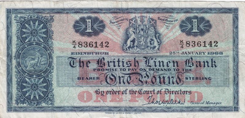 1966 Scotland - The British Linen Bank 1 Pound Bank Note