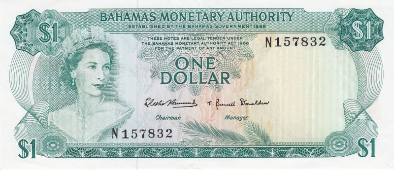 1968 Bahamas Monetary Authority $1 Dollar Bank Note - UNC