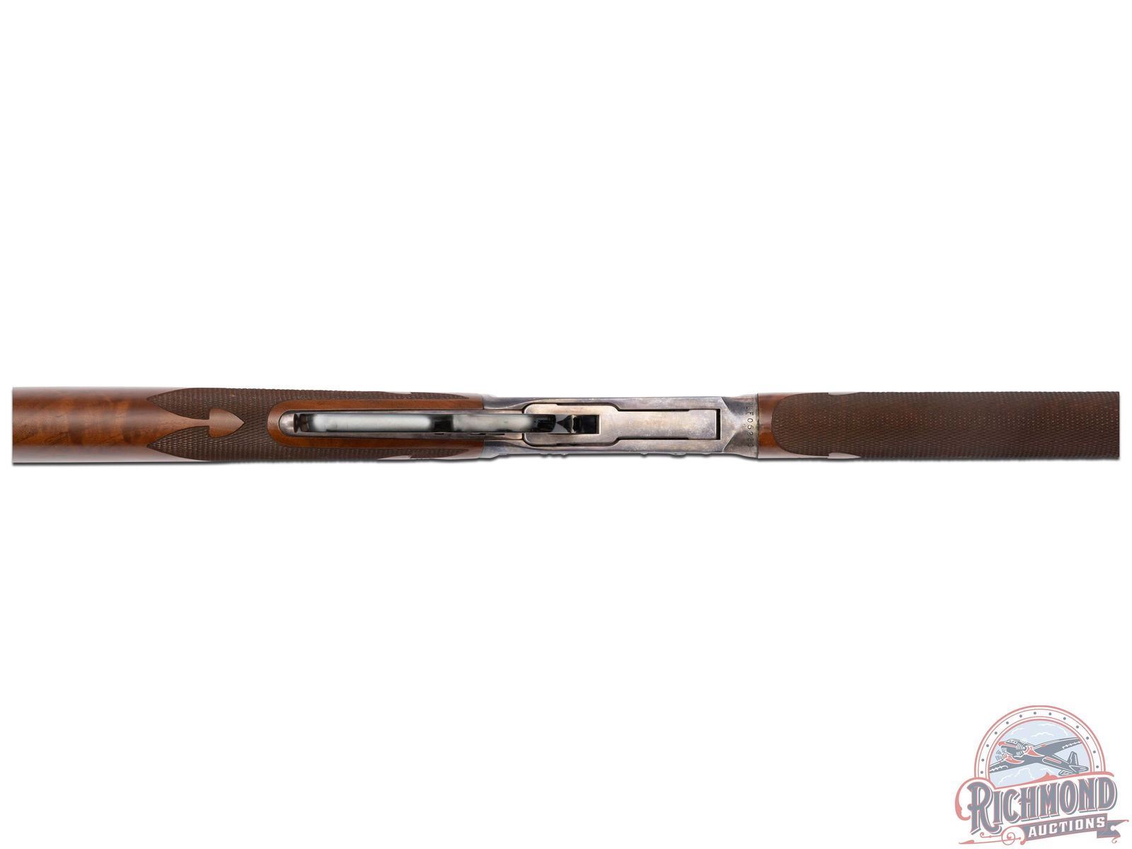 Retains 96%+ finish on barrel and tube. Action silver shows some tarnish from age and storage. Stock shows a few light dings, and light scuff in the forearm checkering. Great bore and mechanics.