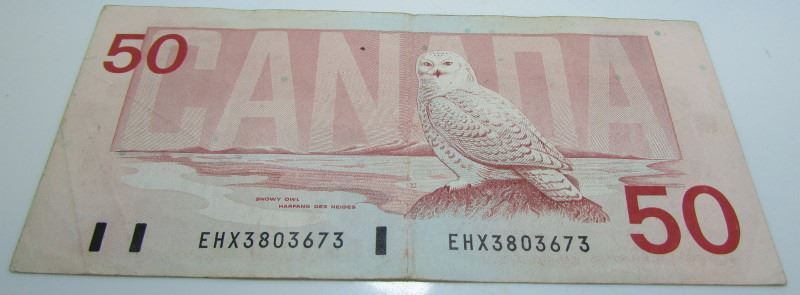 1988 Bank Of Canada $50 Replacement Bank Note - EHX Serial - Thiessen/Crow Signatures - Book Value $75