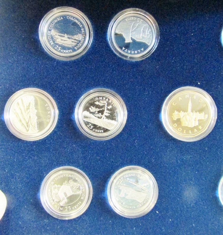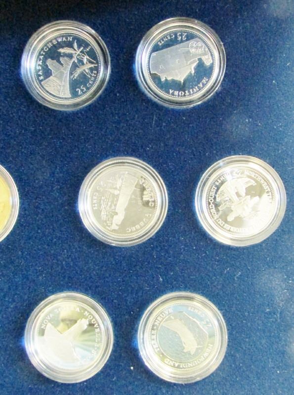 1992 Canadian Quarter Coin Set With Parliament Loonie Coin - On Map Card - Each Quarter Represents The Provinces & Territories Within Canada As It Celebrates It's 125th Anniversary