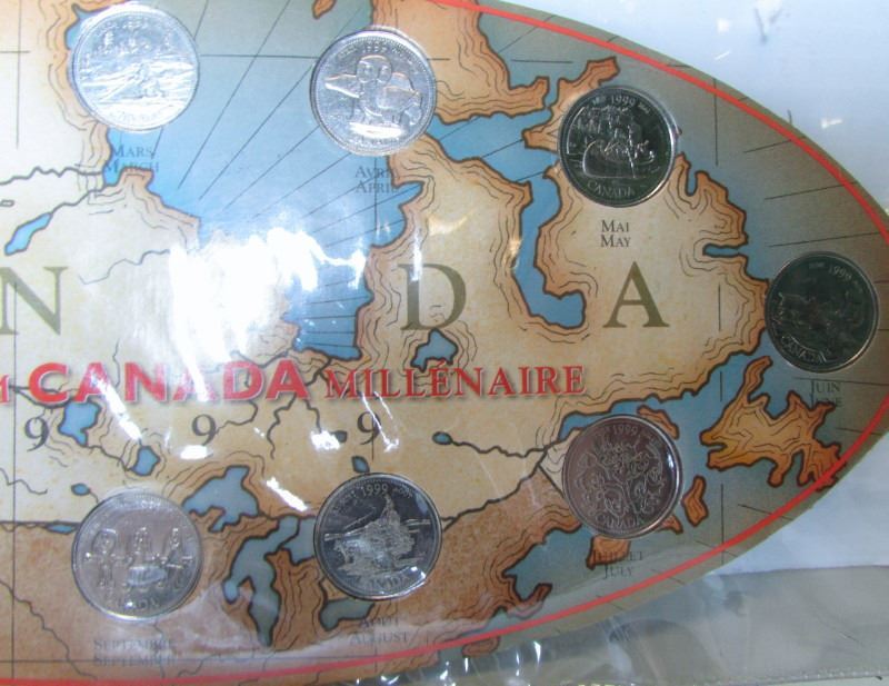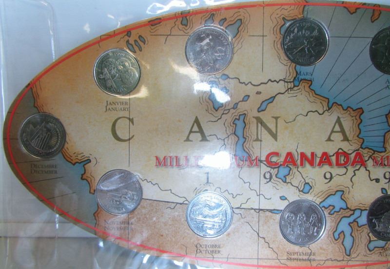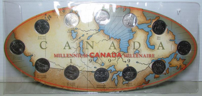 Canadian 1999 Millennium Quarter Set In Display Card - 1 Coin Per Month