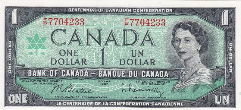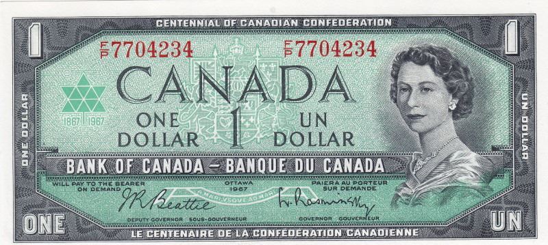 2 Consecutive 1967 Bank Of Canada $1 Bank Notes - Beattie/Rasminsky