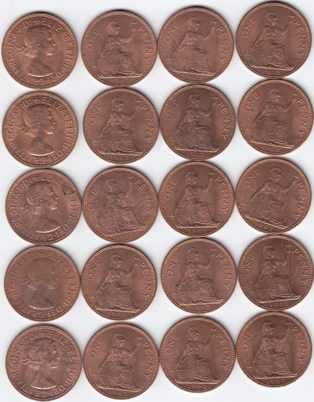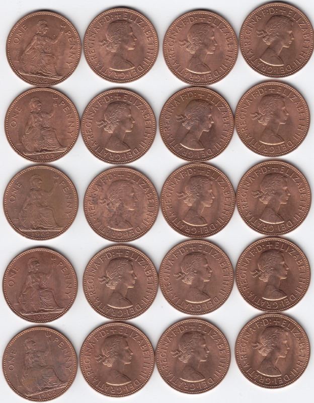20 x 1962 UK - Great Britain - One Penny Coins (AU - UNC) -- STILL RED!!