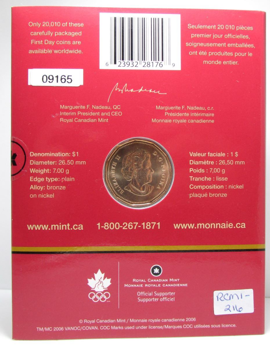 Canadian Official First Day 2006 Lucky Loonie ($1 Dollar Coin) By Royal Canadian Mint