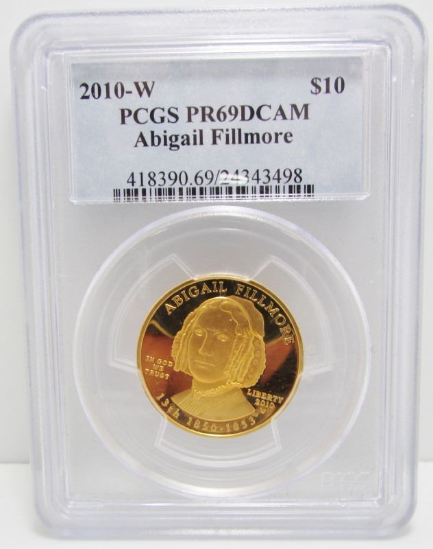 2010 W USA $10 .9999 1/2 Oz Gold $10 Coin, Graded By PCGS As PR69DCAM - Abigail Fillmore - Cert # 24343498 -- NO TAX