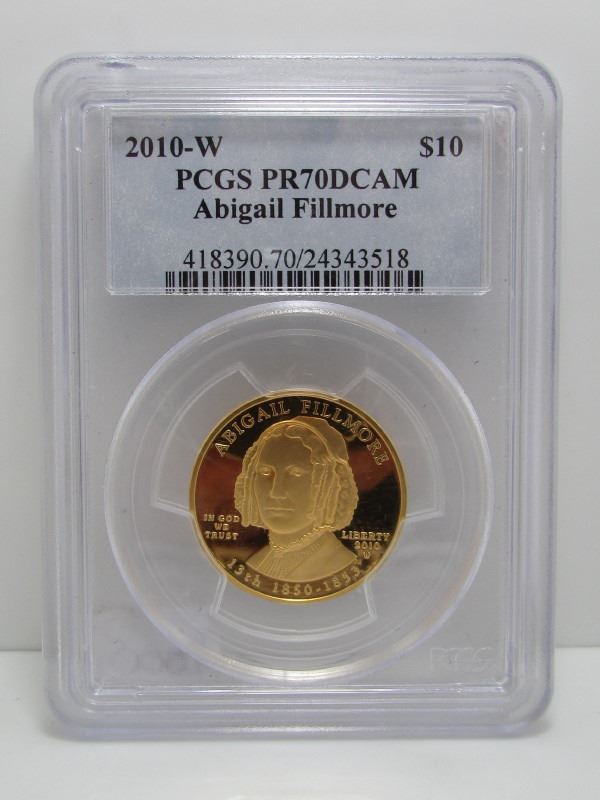 2010 W USA $10 .9999 1/2 Oz Gold $10 Coin, Graded By PCGS As PR70DCAM - Abigail Fillmore - Cert # 24343518 -- NO TAX