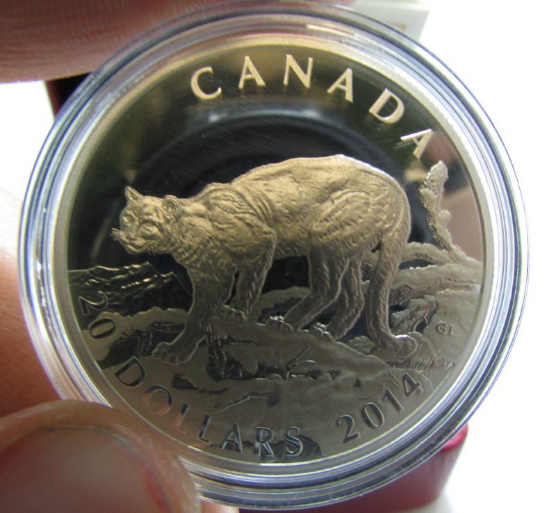 2014 Canada $20 Fine Silver Coin - Cougar: Atop A Mountain By RCM