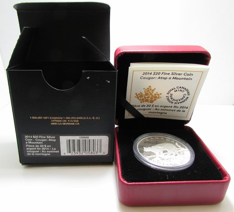 2014 Canada $20 Fine Silver Coin By The Royal Canadian Mint - Cougar: Atop A Moutain - Mintage Of 8500, This One Is 1061 - NO TAX