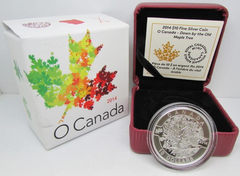2014 Royal Canadian Mint O Canada Series $10 Fine Silver Coin - Down By The Old Maple Tree - Mintage Of 40,000 This One Is #12865 -- Original Box & COA - NO TAX
