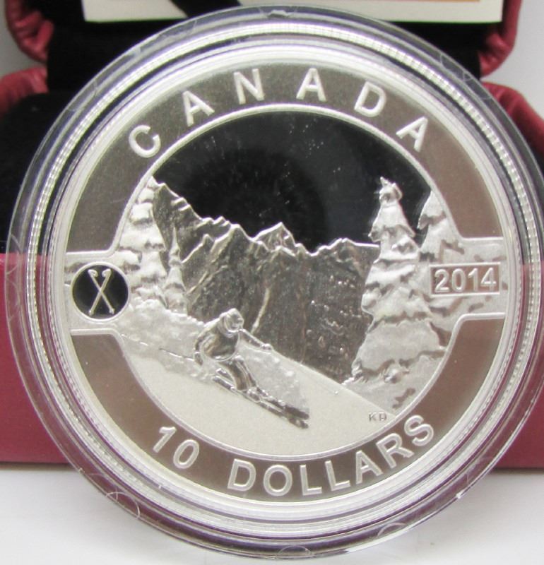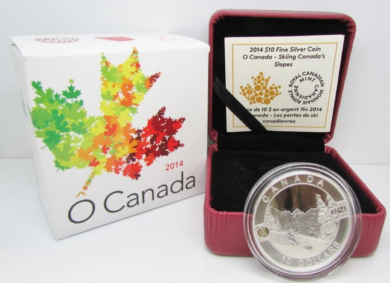 2014 O Canada Series $10 Fine Silver Coin - Skiing Canada's Slopes - By RCM