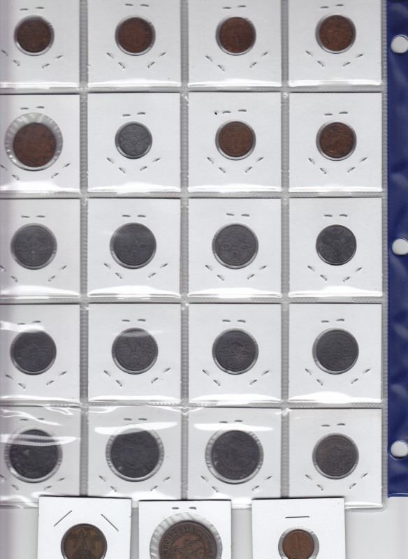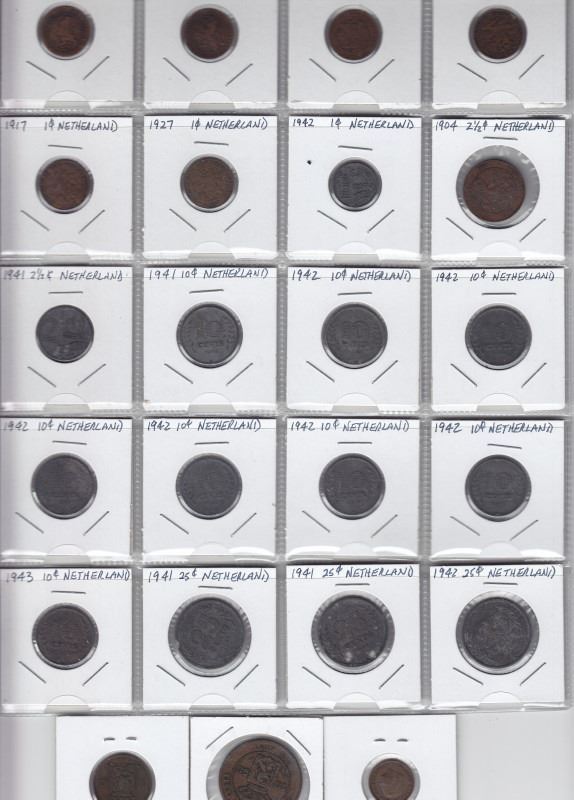 Netherland Coin Collections - 24 In All - Coins Include: 1878 1-Cent, 1883 1-Cent, 1900 1-Cent, 1916 1-Cent, 1917 1-Cent, 1927 1-Cent, 1942 1-Cent, 1904 2 1/2-Cent, 1941 2 1/2-Cent, 1941 10-Cent, (6 x) 1942 10-Cent, 1943 10-Cent, (2 x)1941 25-Cent, 1942 25-Cent, 1951 1-Cent, 1876 1-Cent, 1858 2 1/2-Cent