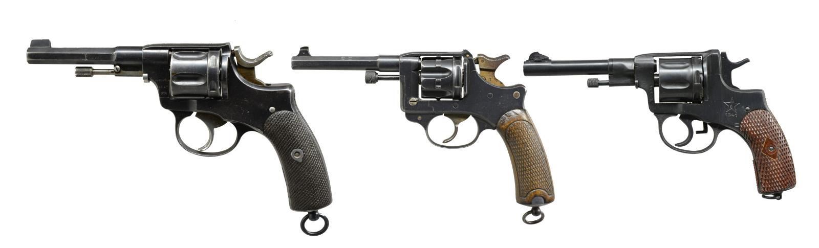 3 MILITARY REVOLVERS FROM RUSSIA, FRANCE, &