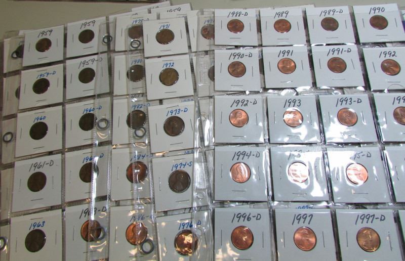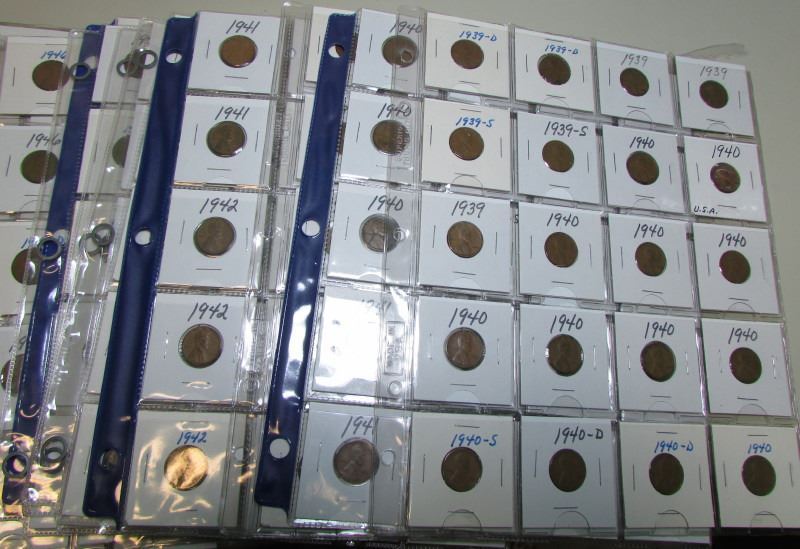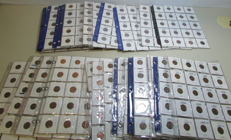 31 Pages Of USA Small Cent Penny Coins - All IN 2x2's - Years Range From 1939 - 1998 -- 609 PENNIES IN ALL!!! -- Comes In 2x2's And Binder Sheets -- All The Work Is Done For You