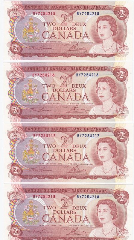 4 Consecutive 1974 Bank Of Canada $2 Bank Notes - Lawson/Bouey
