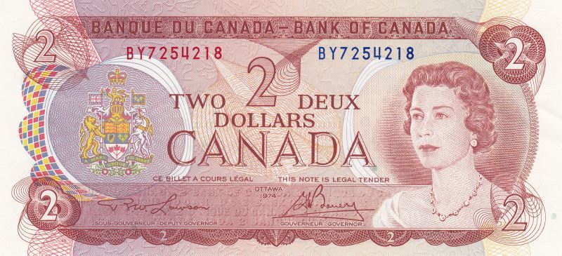 4 Consecutive 1974 Bank Of Canada $2 Bank Notes - Lawson/Bouey Signatures - Book Value $50