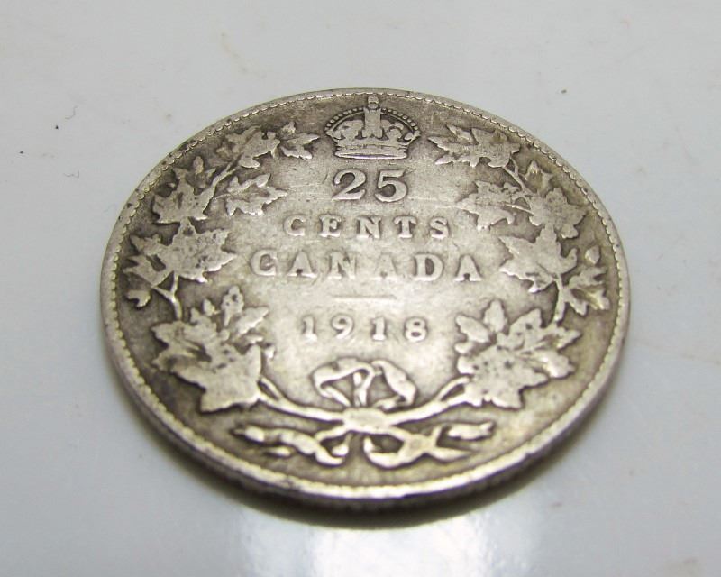 40 Circulated 1918 Canadian Sterling Silver 25-Cent Quarter Coins - Full Roll - Conditions Vary