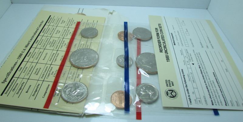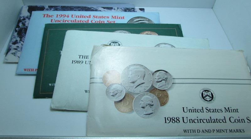 United States Uncirculated Coin Sets - 1988, 1989, 1993, 1994, 1997, 1998 - (D&P Mint Marks Included In Each Envelope)