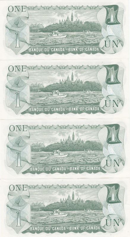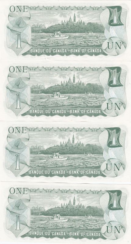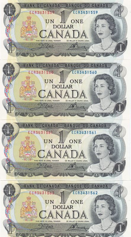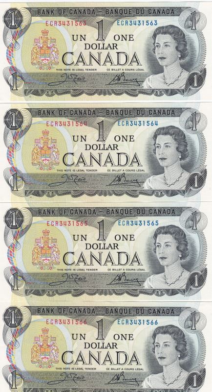 8 Consecutive 1973 Bank Of Canada $1 Bank Notes - Crow/Bouey, ECR Series - All UNC